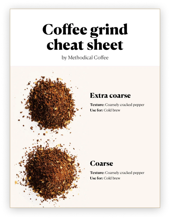 We made you a cheat sheet to download and print (maybe even frame) or keep on your phone to keep your coffee-grinding locked in.